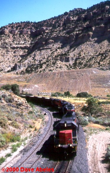 I chased the train back west as well. There is a decent shot just east of Wellington, UT, from a bridge embankment for a road that goes over the tracks. I caught both the dirt train and DVROZ there, the Z had run ahead of the dirt train prior to its leaving the Sunnyside branch. Then it was back to Helper. The rest of the day was spent chasing trains on the climb to Soldier Summit. Great shots, great light (till the thunderstorms come over the summit late in the afternoons) and enough action- especially when I chased it. Afternoon light was spectacular on the yard in Helper as well. At the end of the day, I watched a crew assemble 6 T-2's and splice them into an 85-car westbound coal drag. I chased it west till a thunderstorm hit at dusk up at Colton, and I went to bed tired but happy.